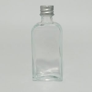 CAM ŞİŞE 50CC-KARE MODEL METAL KAPAK+PLASTİK TIPA+GÜMÜŞ KAPAK