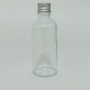 CAM ŞİŞE 50CC-TOMBUL DESENLİ METAL KAPAK+PLASTİK TIPA+GÜMÜŞ KAPAK