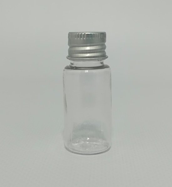 PLASTİK ŞİŞE 10 CC METAL KAPAKLI+PLASTİK TIPA-SİLİNDİR MODEL-GÜMÜŞ KAPAK-20 ADET